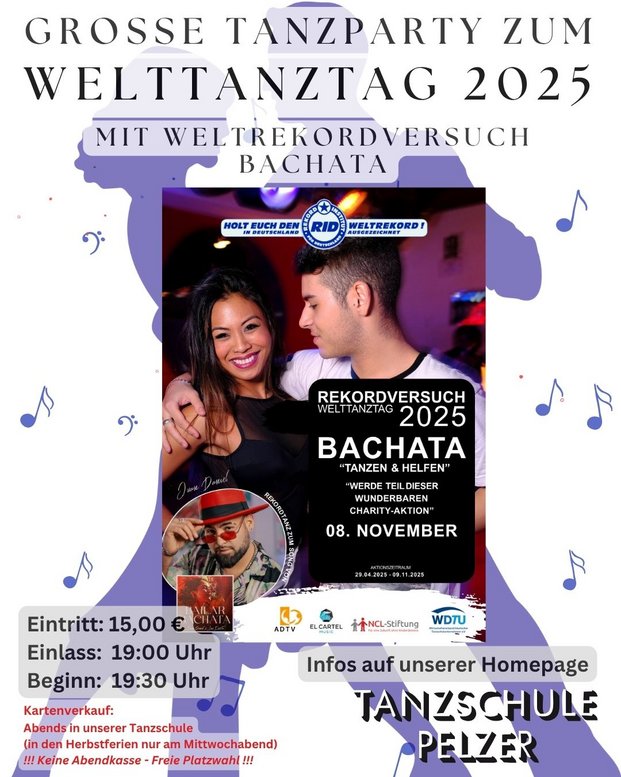 Einlass 13:30 Uhr, getanzt wird von 13:45 bis 14:45 Uhr. Kosten: 9,00€ pro Person/Termin.